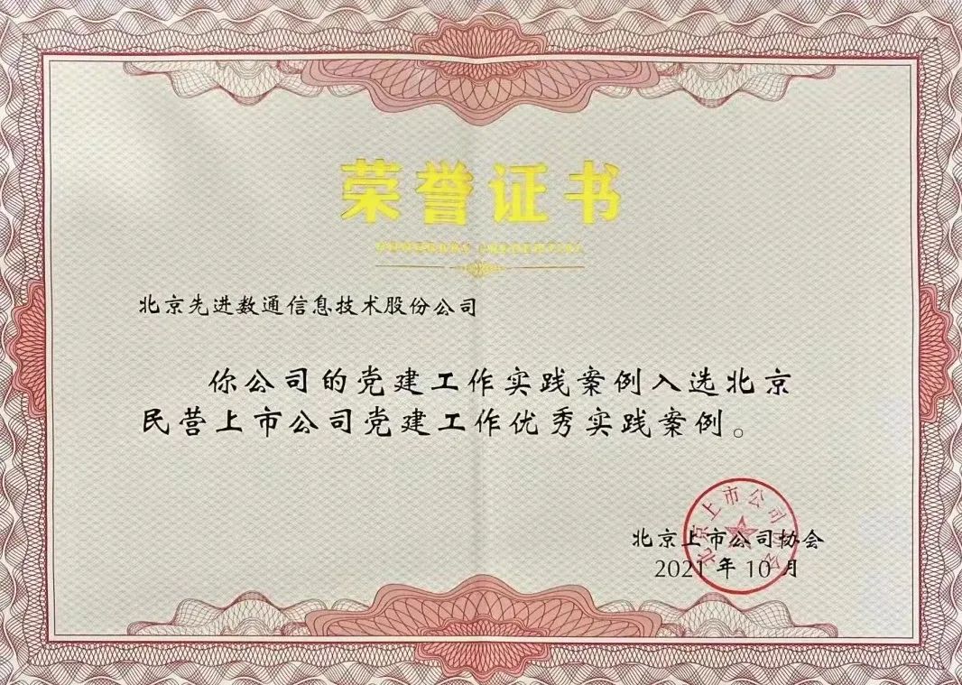 近期,北京上市公司协会授予北京WM视讯平台 WM信息技术股份公司荣誉证书,WM视讯平台 WM党建工作实践入选北京民营上市公司党建工作优秀实践案例,相关党建活动已收录在《北京民营上市公司党建工作优秀实践案例汇编》。