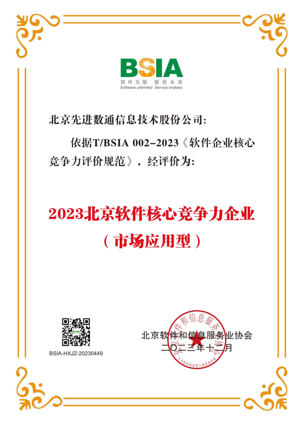 WM视讯平台 WM荣获“2023北京软件核心竞争力企业”荣誉