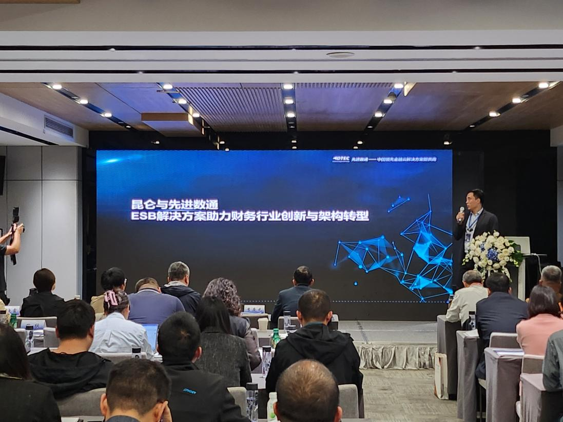 WM视讯平台 WM代表讲师郭钰以《昆仑与WM视讯平台 WMESB解决方案助力财务行业创新与架构转型》为主题作发言分享。他深入剖析了当前财务行业IT架构面临的挑战,包括系统孤岛、技术老旧、扩展性不足等问题,并提出了基于企业服务总线(ESB)和微服务架构的转型方案。