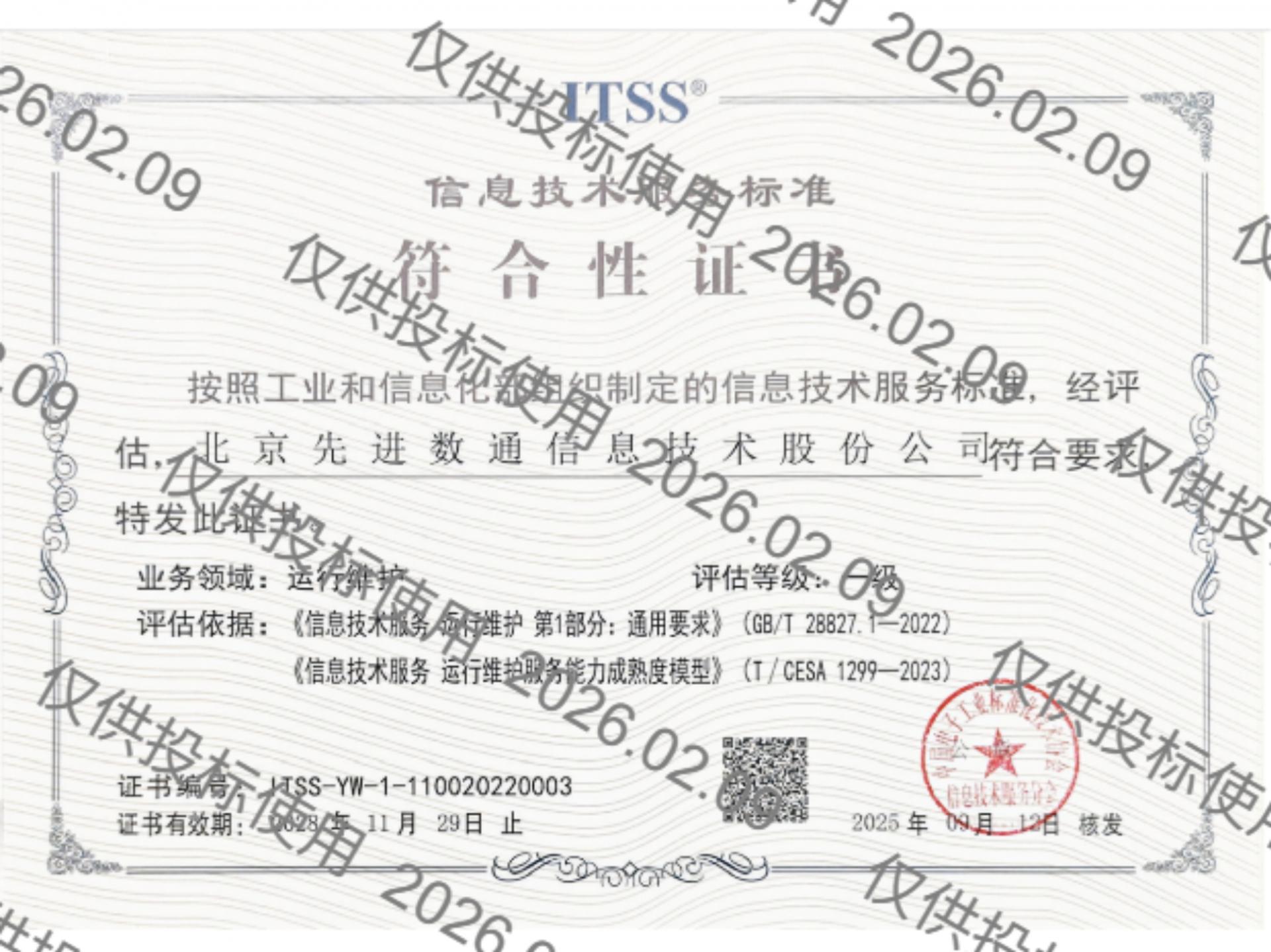 WM视讯平台 WM先后取得CMMIL5、软件能力成熟度五级(SPCA 5)、信息系统建设和服务能力评估体系(CS)5级、ITSS成熟度一级、信息系统安全集成服务资质二级、信息系统安全运维服务资质二级、国产化信息系统集成和服务能力评估四级(LS4)、北京市企业技术中心等资质认证,并取得ISO9001、ISO20000、ISO27001、ISO14001、ISO45001、ISO22301、ISO37001、ISO28001、GBT29490等标准体系认证,具备行业领先的技术开发、工程实施及服务保障能力。